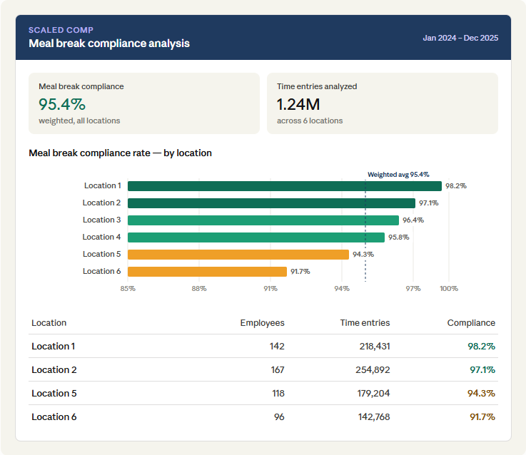 Early time-record analysis at scale. With the Scaled Comp AI-backed software, we can analyze millions of time entries at the outset of litigation—identifying exposure, supporting reasonable efforts arguments under reformed PAGA, and positioning cases for earlier resolution.